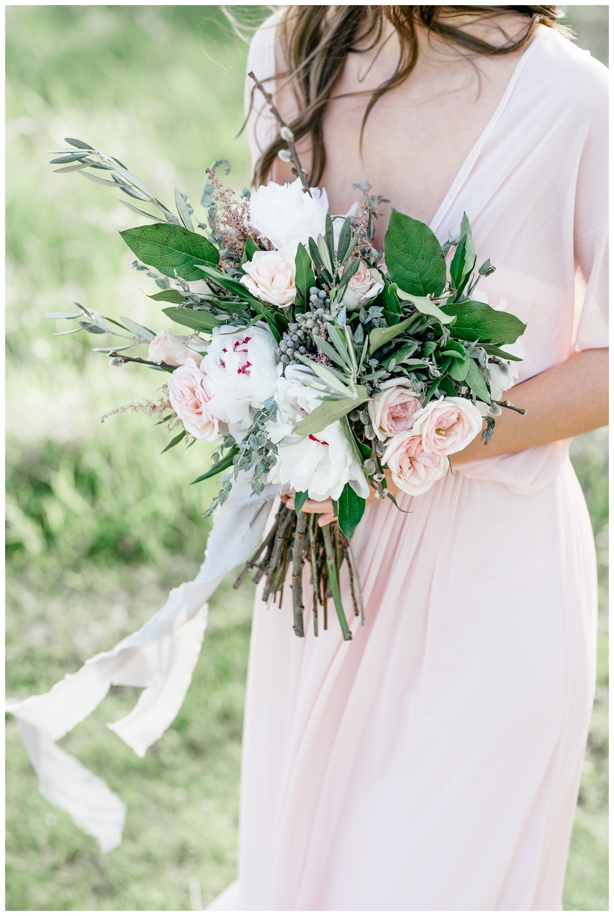 Crazily enough this idea has kinda blown up this past year, have you seen the articles floating around in the wedding world?! What do ya think? Would you have some furry guests strolling around and entertaining your guests? My sister graciously offered to model for this shoot and Sally chose Hope to model, the alpaca she thought would cooperate best (with animals ya just never know!). Being May I wanted something springtime-y so we used my sister’s petal pink David’s Bridal gown she already owned from wearing to my own wedding. Romantic, blush, flowy, it’s technically a bridesmaids dress but I think it could still pass as a gown for a bride looking for something simple, budget-friendly yet still different. We also loved it cause it is convertible! You can play around with it, twist it different ways, add some sleeves if you get cold. Lauren of Flower Mill LLC got on board and provided the bouquet and flower crown, sticking to soft pastels. And of course we didn’t leave Hope out, she got her own greenery crown too! We weren’t sure if she would try to bite it off the entire time, but once we put it on she started prancing around with a SMILE on her face. Seriously, this animal was GLOWING!