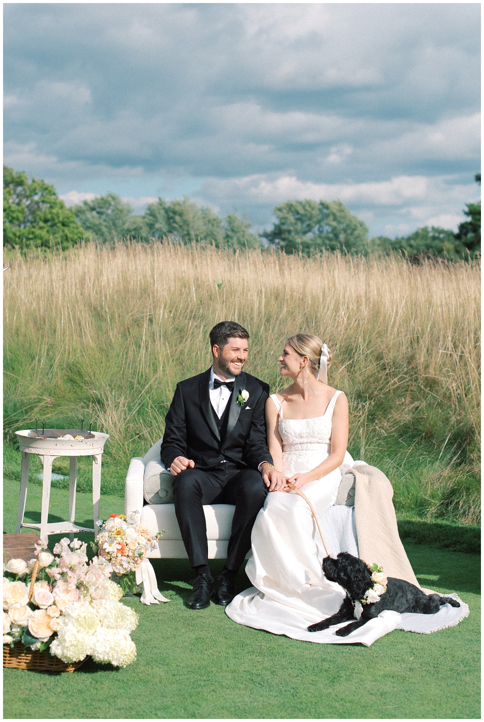 What’s better than one cocktail hour? Two🥂Rebecca & Theo made being present with their guests a priority, taking advantage of the gorgeous summer day and back patio of their venue, The Carriage House in Oconomowoc. They introduced a new concept of a “welcome hour” where they could greet and mingle with guests before their ceremony. After their first look and group pictures were completed (and with guests soon to arrive), Rebecca switched into her pre-ceremony cocktail dress and together they greeted each guest at the entrance to their special day. Since guests typically arrive within the hour before a ceremony, we loved that they chose to make this hour more intentional and be able to mingle with them versus hide! During their cheerful, picnic themed ceremony, with floral baskets of dahlia, zinnia, roses, cosmos and more surrounding them, they surprised everyone by asking to check under their seats to reveal which lucky two would come up and be their official witnesses ✍🏻 Their pup Willow couldn’t help but hang by mom and dad, choosing to lay on moms skirt 🥹 Their welcome table including special mementos of their adventurous tales and travels set the tone for their carefree, outdoorsy day 🛶(and we loved their adventure themed engagement session featuring a floral adorned canoe)! Such a fun, joy-filled celebration with the kind of couple whose love is so palpable, and we wish them all the best in their Switzerland era!